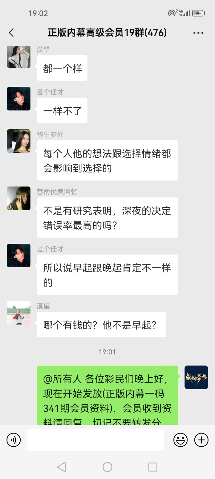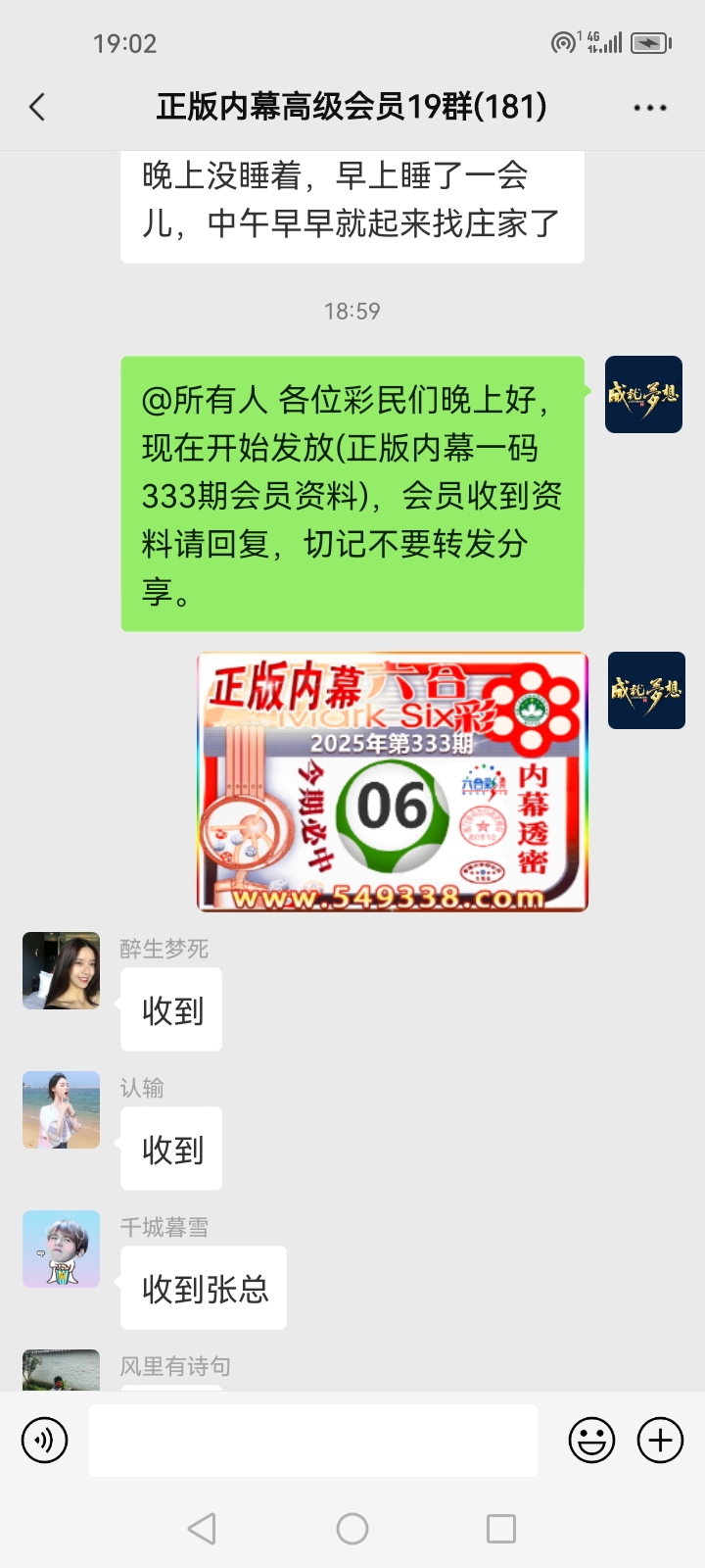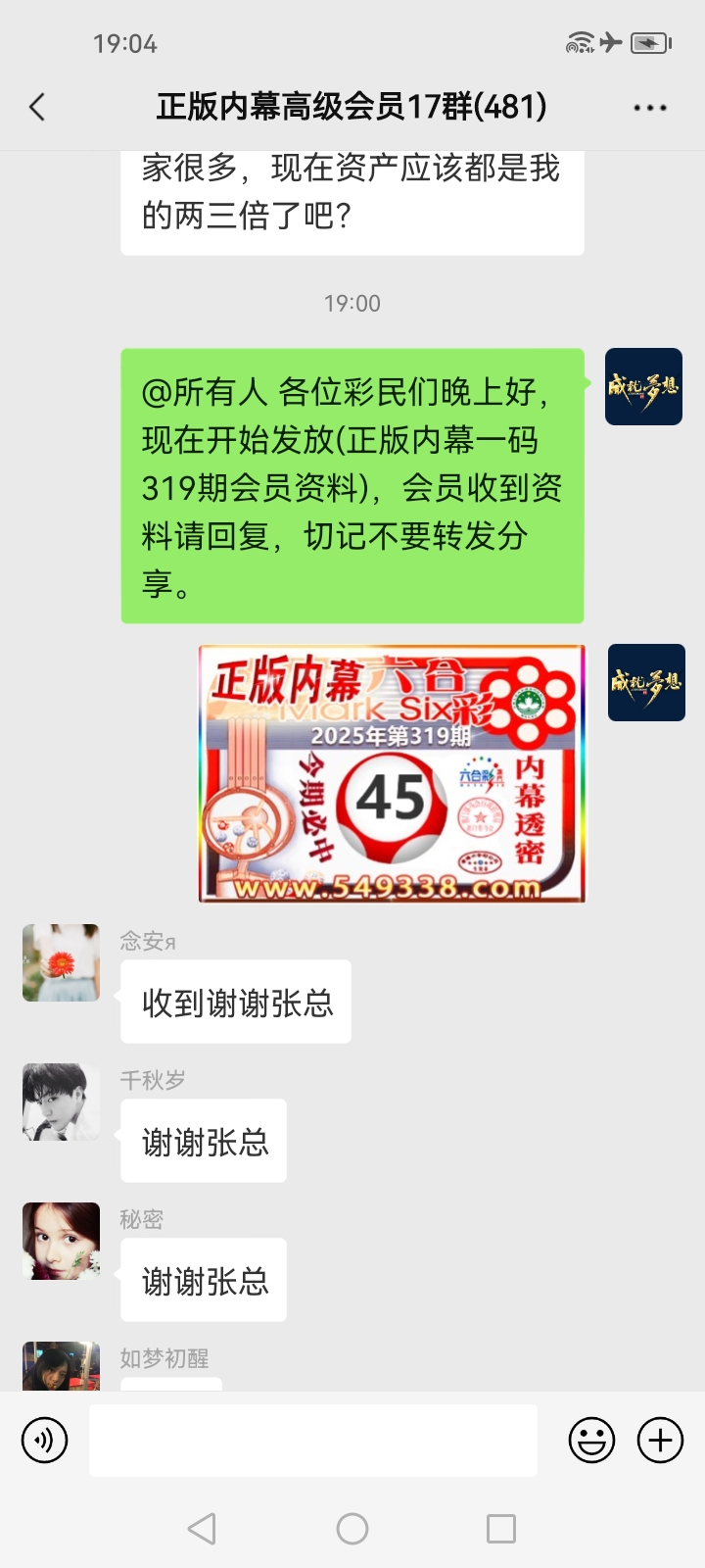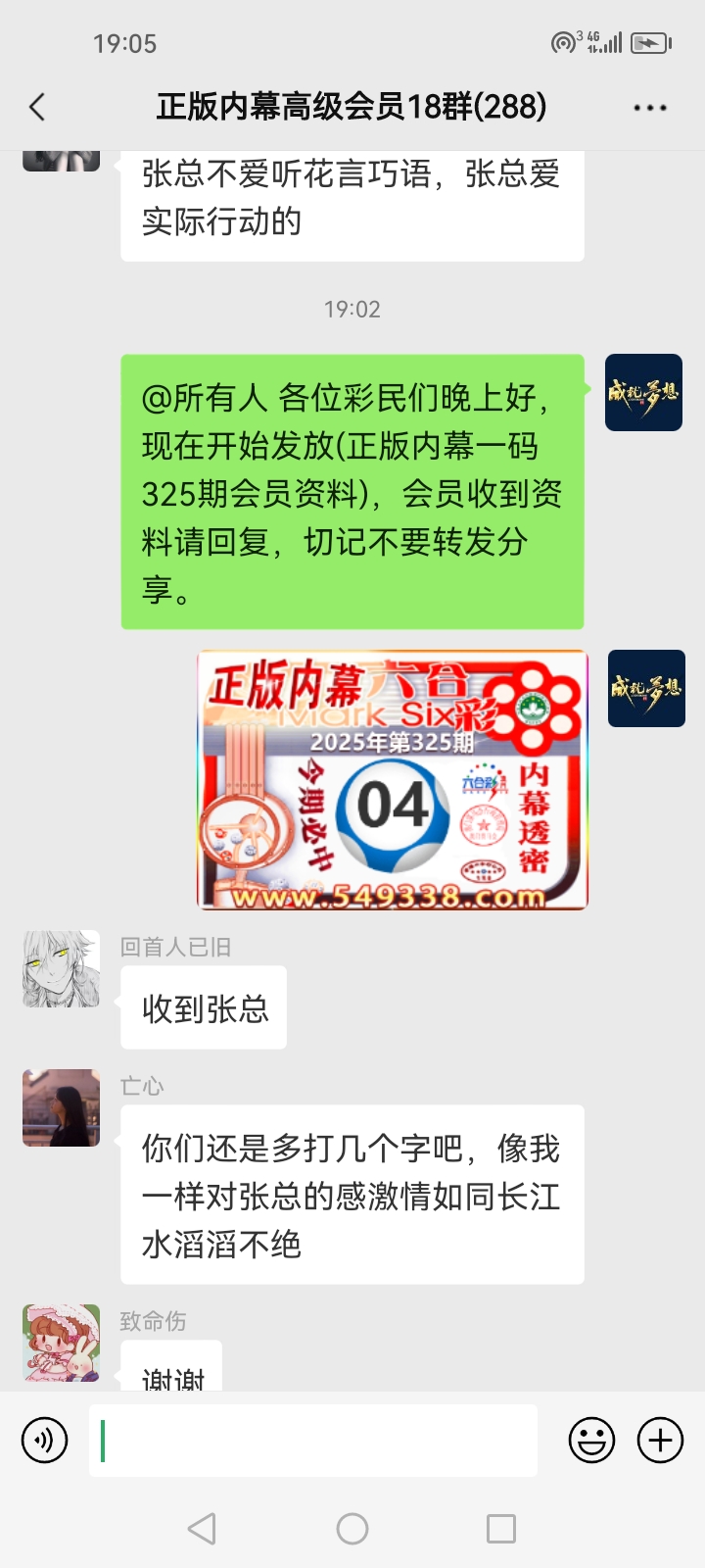 张总你好,昨晚跟你的一码资料,真的中了,不过第一次合作不敢下大,我现在完全相信你的实力了。今晚一码;44, 我下了5000块,现在心情好紧张,希望真的可以中。明天一定给你发个红包。 |