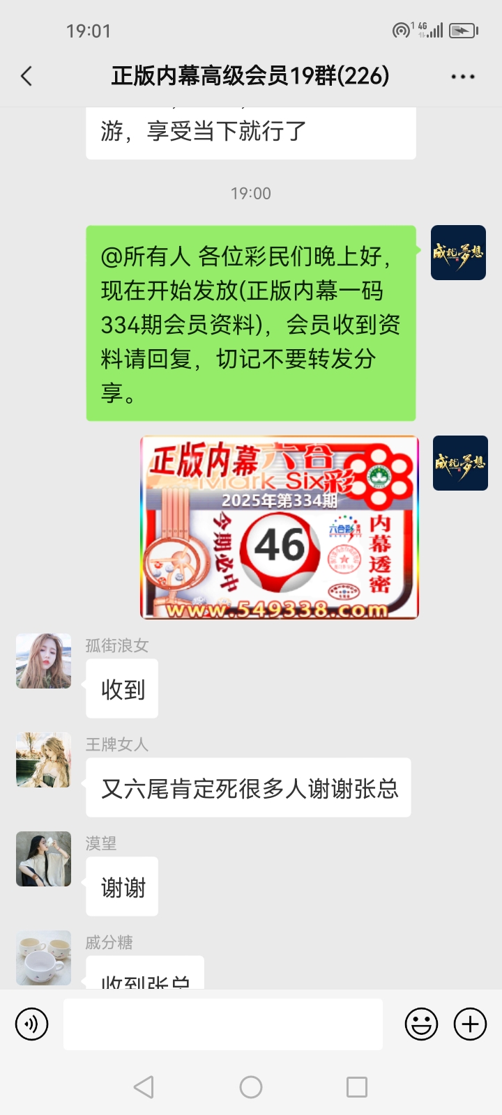 张总,今天办理你的会员,非常感谢你今晚给我资料带我翻身,我是第一天跟你的会员资料,如果今晚一码;22,真的中奖的话,我坚信张总一定会带我把输的赚回来。到时我一定会好好感谢你的大恩大德。 |