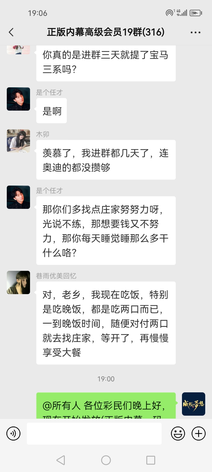 因见朋友在短时间内买车又买房,所以就跟他了解哪里来的资料,一开始还不告诉我听,把我给气死了都,算磨硬泡的终于告诉了这个我这个网站找到张总,然后我也就直接跟张总入会员,也就三期时间吧,我的车就有了,哈哈哈哈哈,当真是好兄弟啊,感谢兄弟感谢张总,我感到人生巅峰,我这边没有庄家敢接我的单了! |