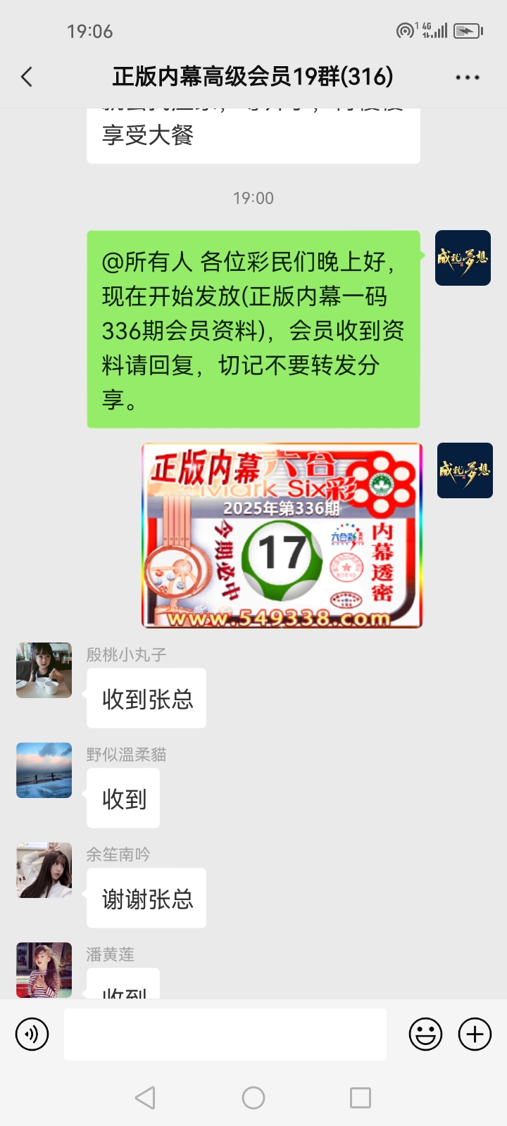 你好!我是湖南的彩民杨杰,没有一份稳定的资料下注我输的好惨,希望张总能拉我一把,我很有诚意要加入会员合作的,我们这边有很多的地下黑庄下多少都有得赔的,所以说要博一博跟着张总合作,要是资料准,我下大点,中了给大红包张总喝茶。会员费发到张总微信上了,请查收。早上起来记得帮我入会哦,我今天要开始下注了! |