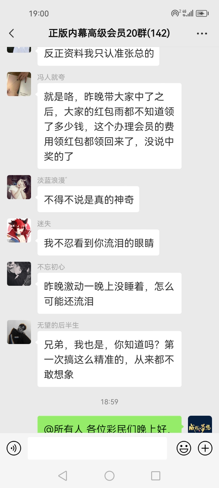 昨晚的资料,直接让我中了十几万,哈哈哈哈, 果然这里是内部资料了,以后发财就靠张总了,合作愉快张总。 |